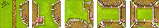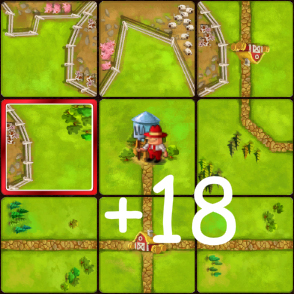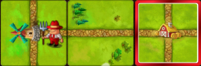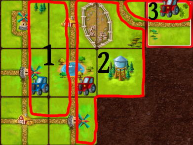In this example there are 3 different fields. If the game ends at this point – only the second farm will score 5 points, because it is neighboring on 1 completed farm