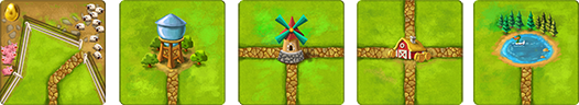 Ending tiles are crossroads , lakes, water-towers, windmills and road farms. Example: