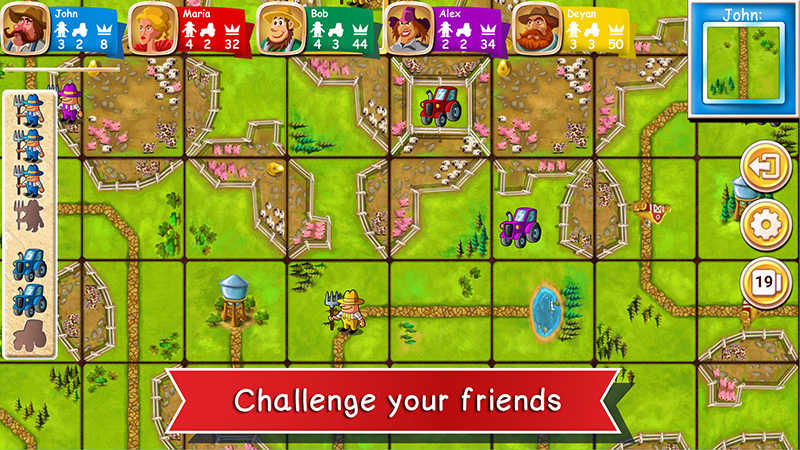 Farm Builder is online strategy board game similar to Carcassonnefor 2-5 players, in which you have to build cities, roads, cloisters and score points. Good luck