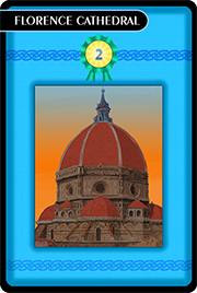 This card give you 2 final points and 1 coin for every state of your miracle that you built.