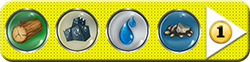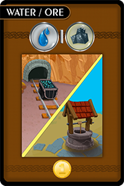 In this example the card is giving you two resources - water OR ore and the price for playing it is one coin.
