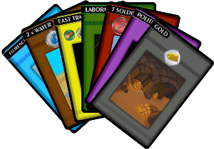 The symbols at the top of the cards specify what goods the cards are giving you if you play them.