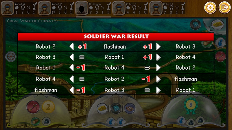 Soldiers are compared at the end of every epoch. Every player battles his neighbors on left and right